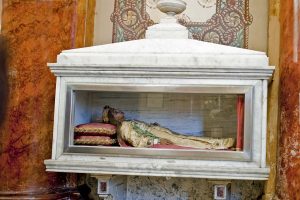 Inclusive mais tarde, nesse tempo em que passei a frequentar mais a Igreja de Santa Cecília, eu não sabia ao certo se aquela figura era a própria santinha, que estava lá com o seu corpo incorrupto, ou se era uma imagem, dentro da qual se encontravam relíquias dela. Havia ali uma placa escrita em latim, que eu tentava ler e em parte compreendia, mas não por inteiro. Mesmo assim, tinha ideia de que não se tratava exatamente do corpo dela.